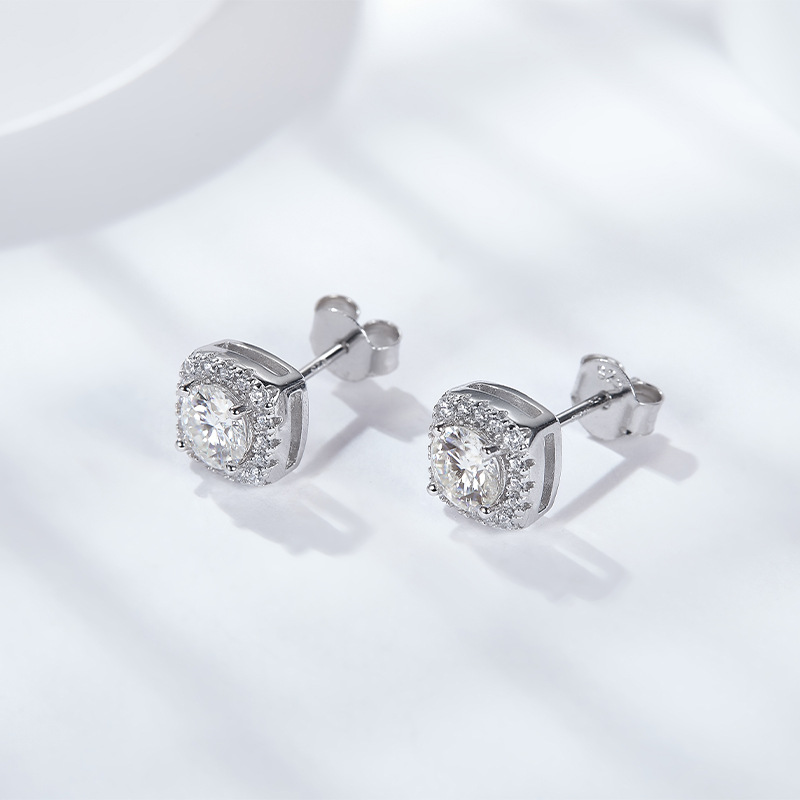 Discover the perfect fusion of modern geometry and timeless brilliance with our Square-Clad Moissanite Stud Earrings. Expertly crafted in premium sterling silver, these luxurious studs feature a captivating square-cut moissanite, renowned for its exceptional fire and clarity that rivals traditional diamonds.